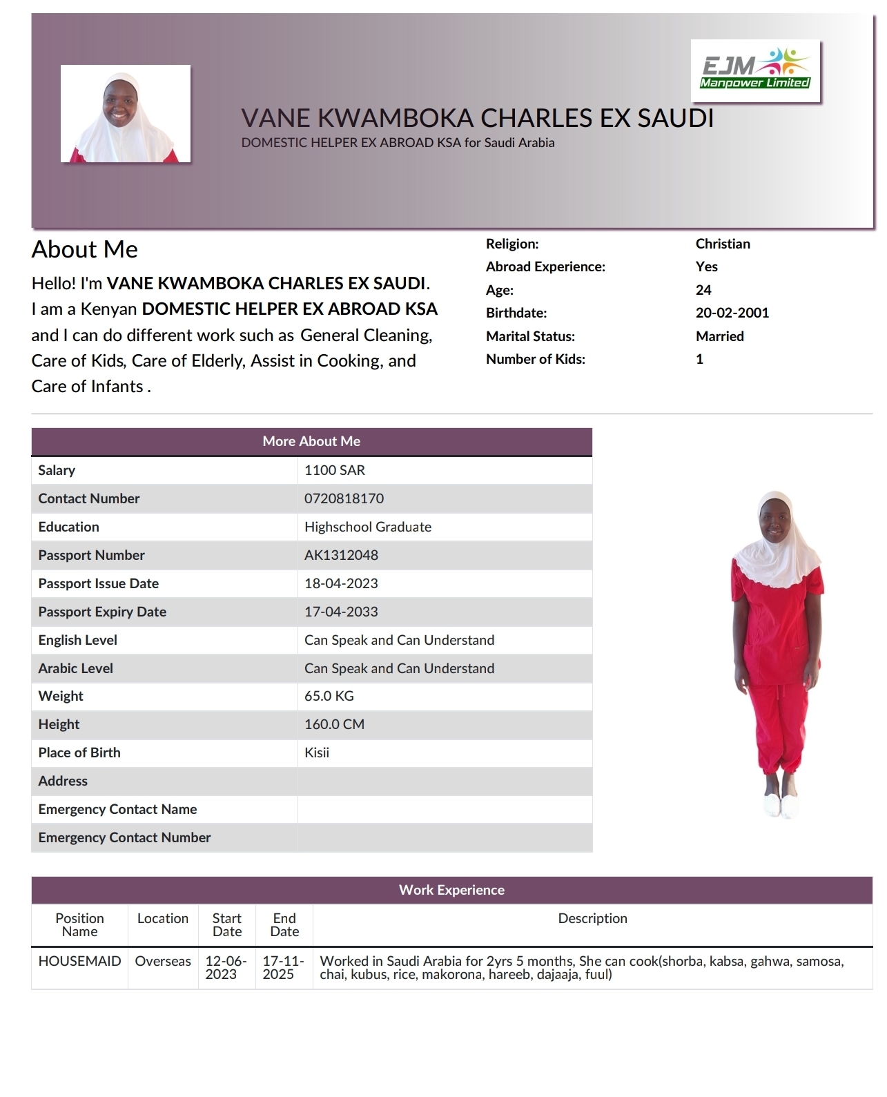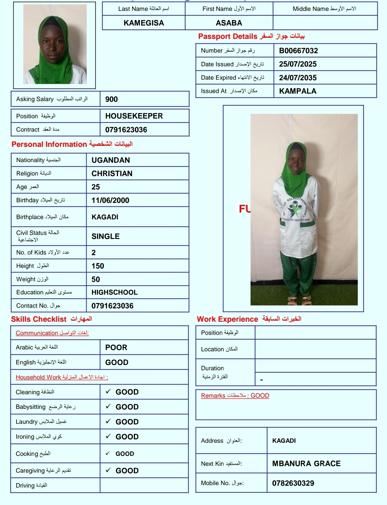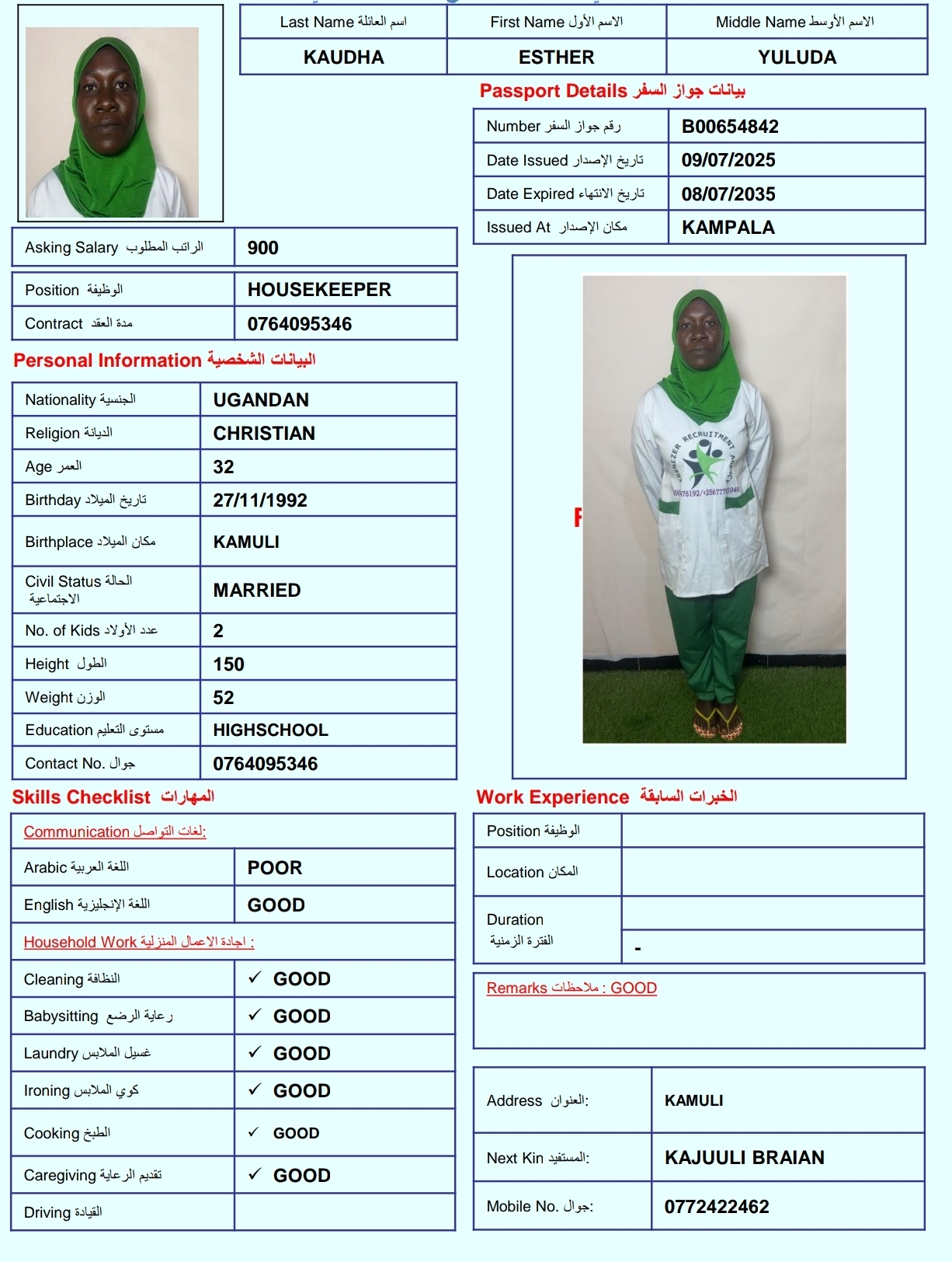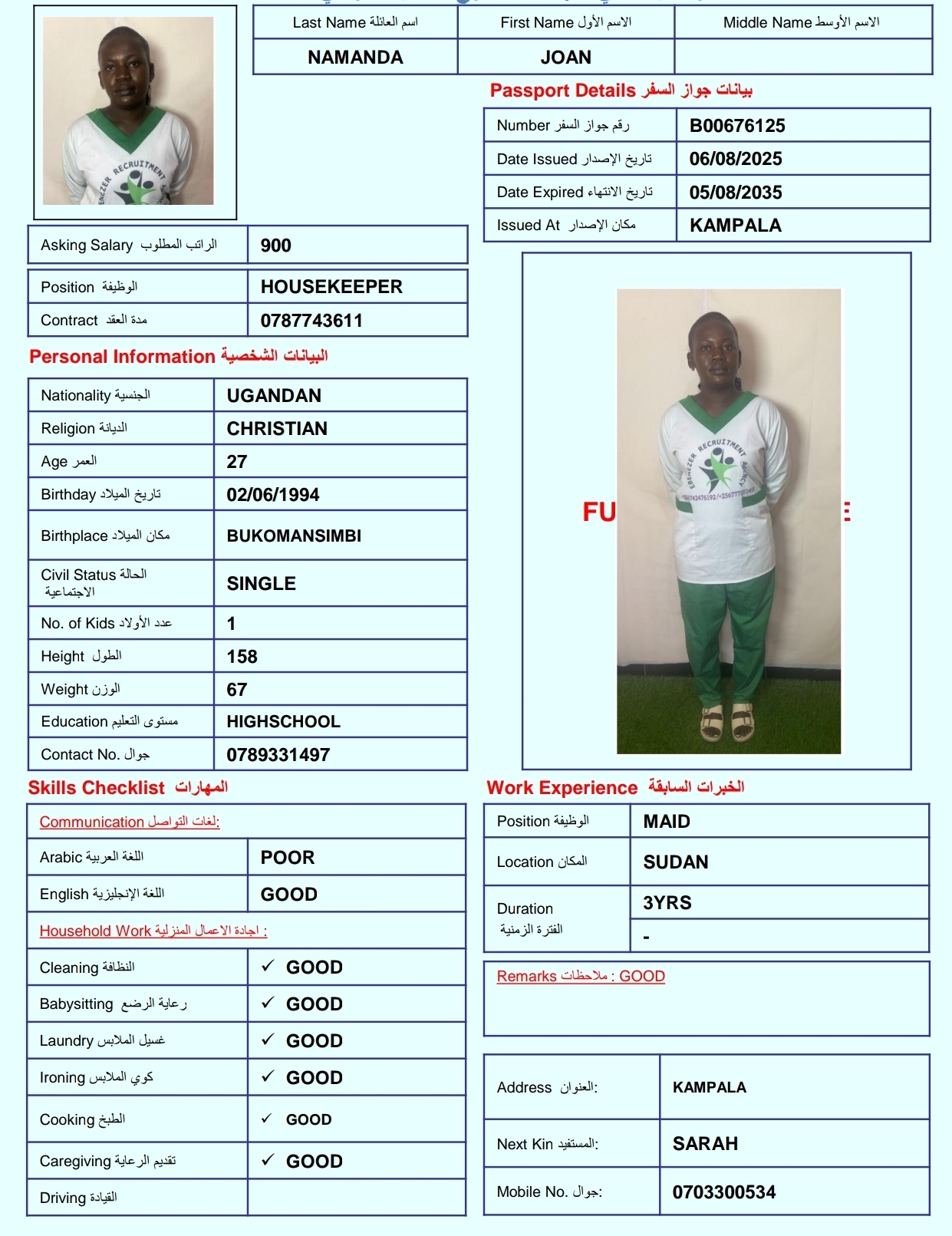 "أكثر شيء عجبني هو الصدق في التعامل. استقدام عاملة أوغندية للتنظيف، وشغلها ممتاز وتعاملها محترم داخل المنزل."