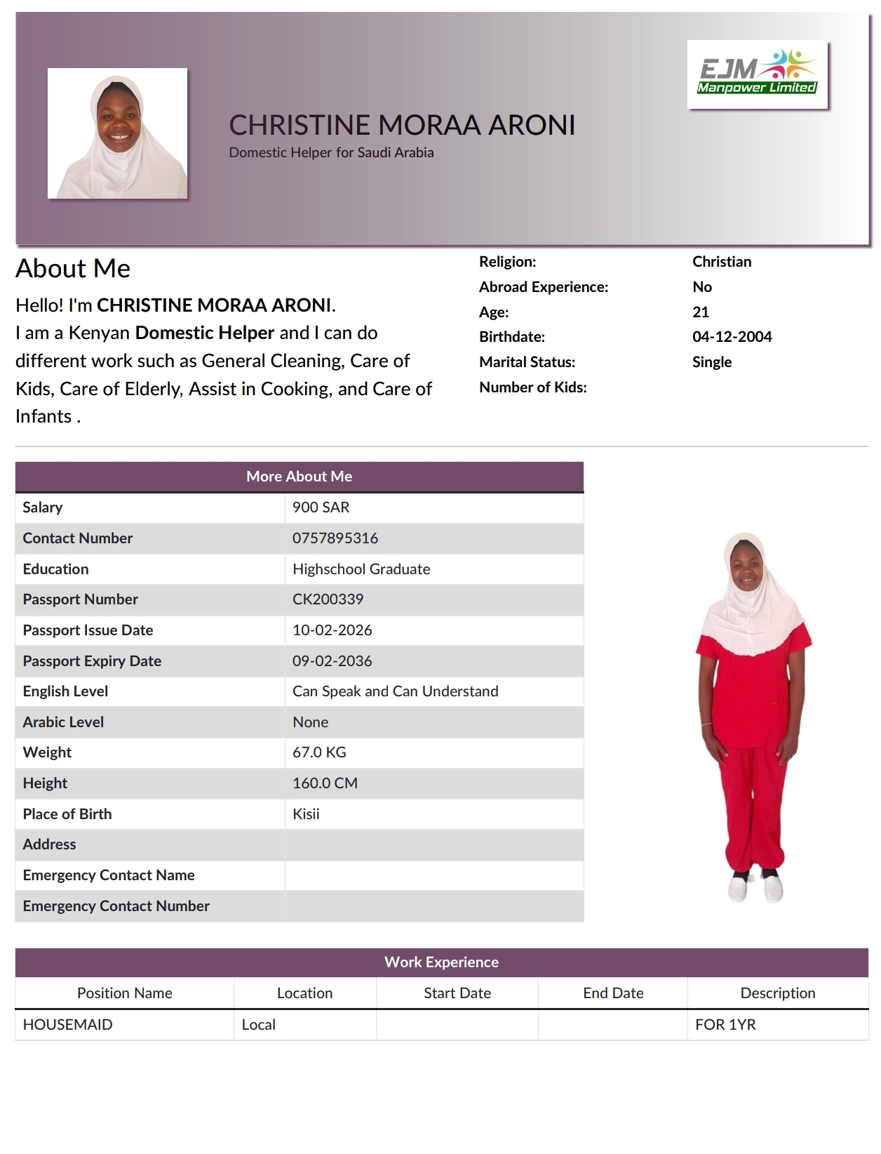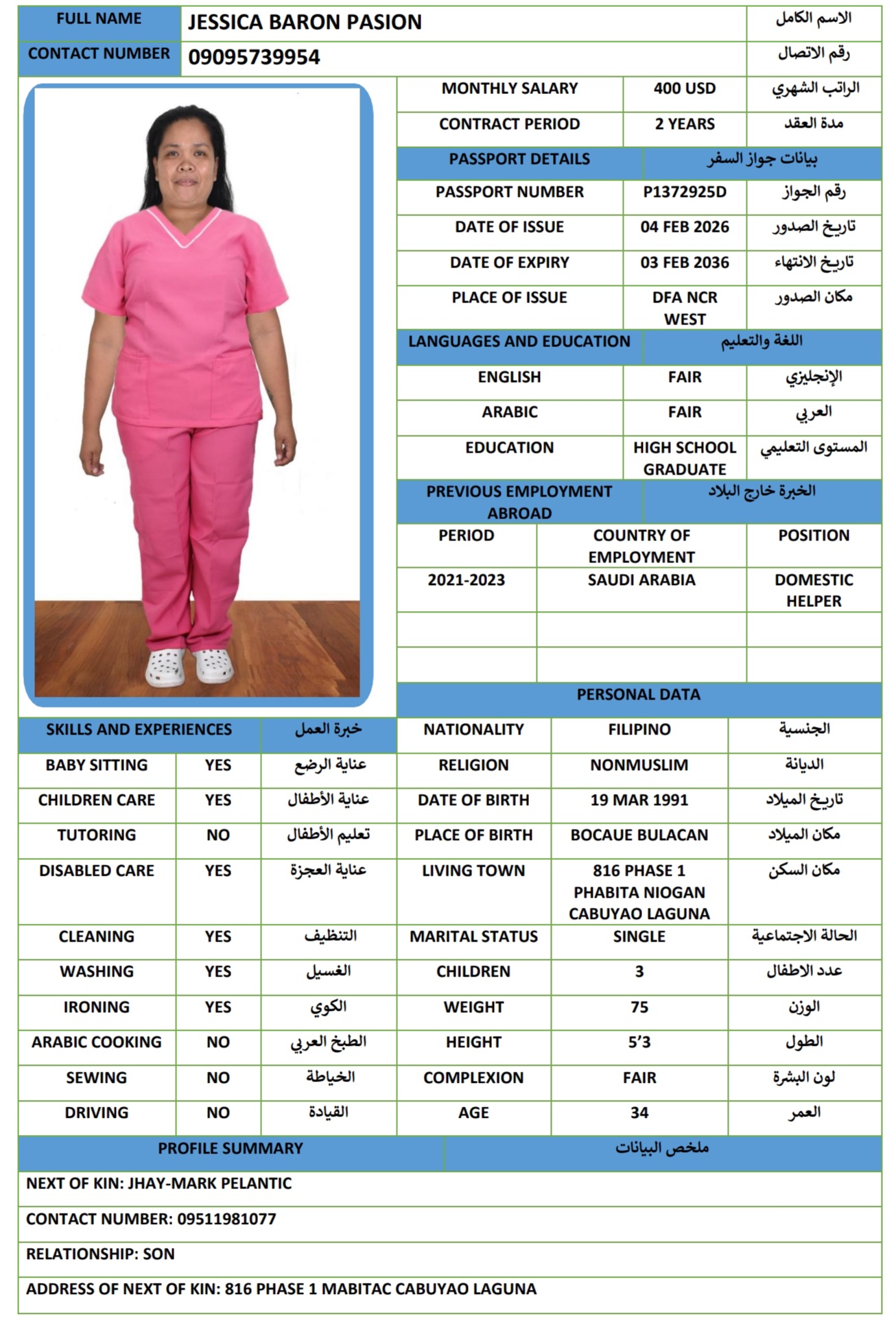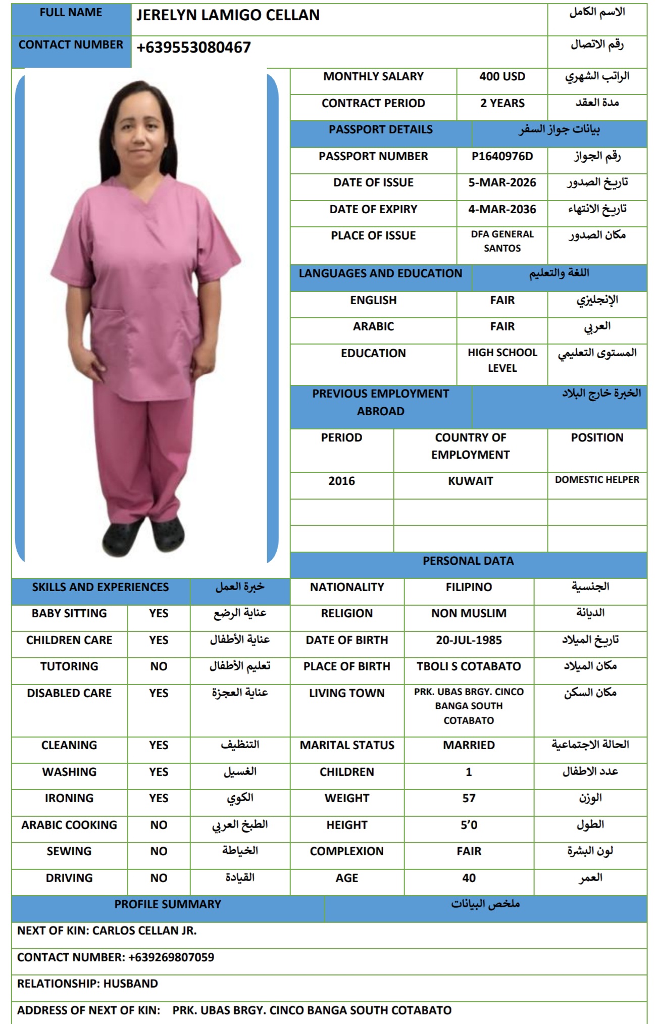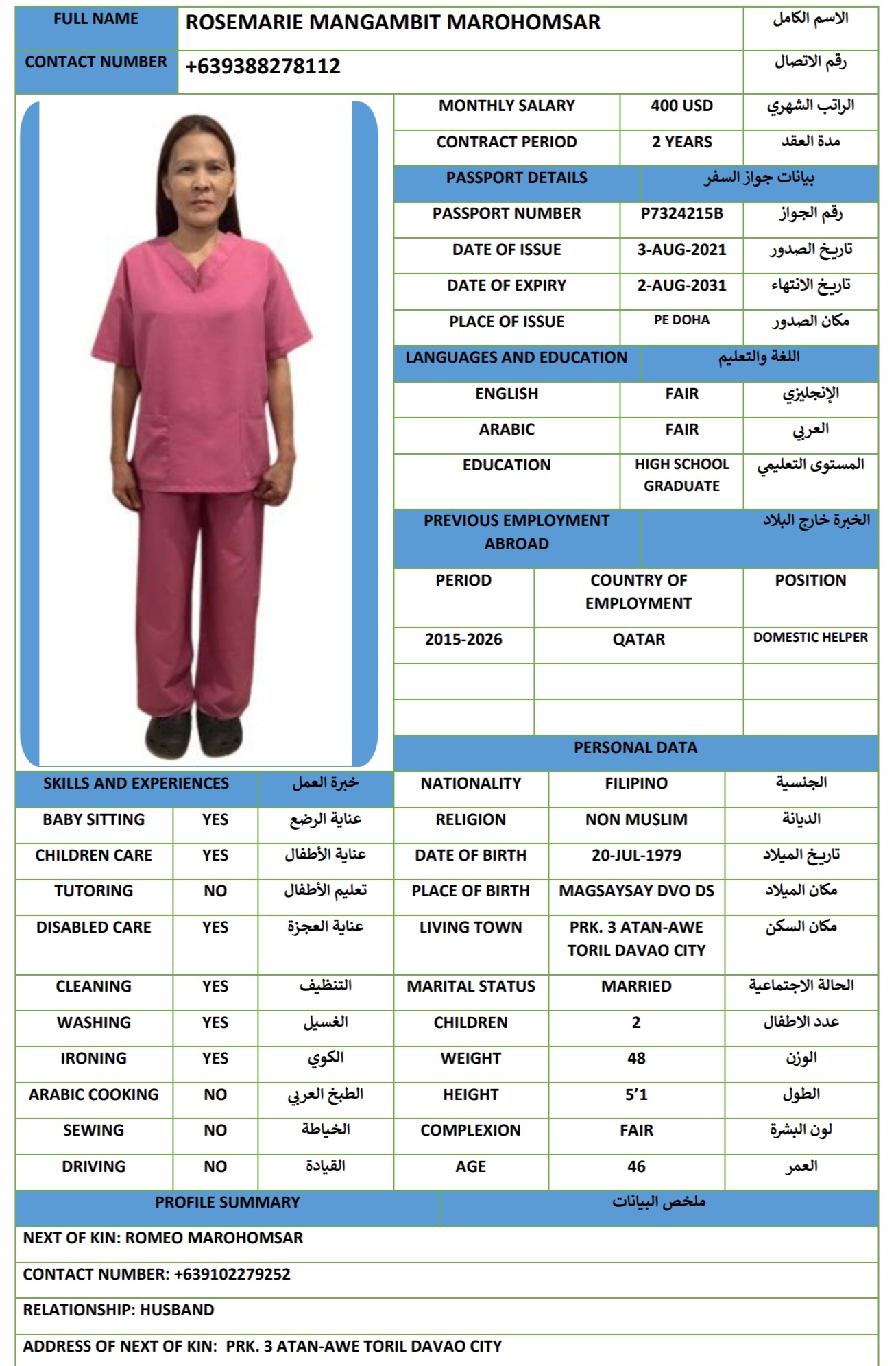 "تعامل راقٍ من المكتب، العاملة الفلبينية ممتازة في التنظيف ومرتبة جدًا، وتعرف شغل البيت كويس. الالتزام في المواعيد كان واضح من البداية."